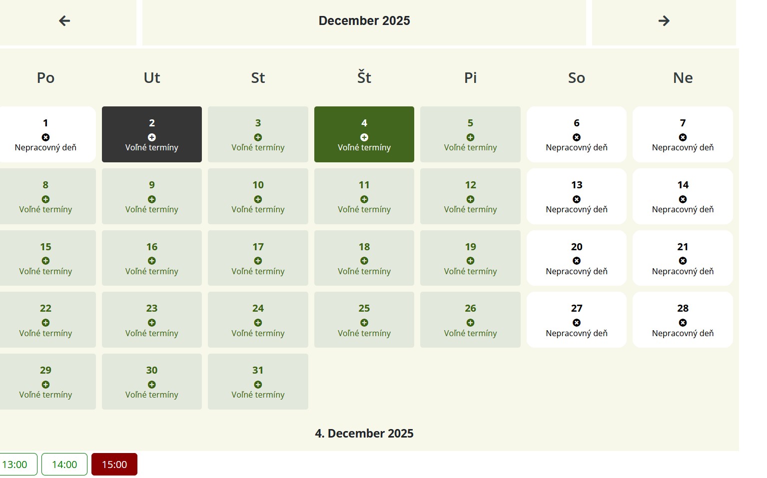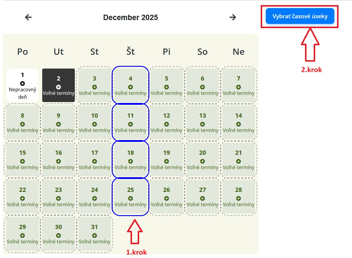 1. krok: V rámci jedného mesiace vyberte deň v týždni, kedy je plánovaná rezervácia