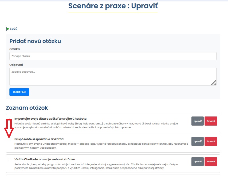 2. Práca s modulom: vkladanie otázok a odpovedí, ich úprava, zmena poradia