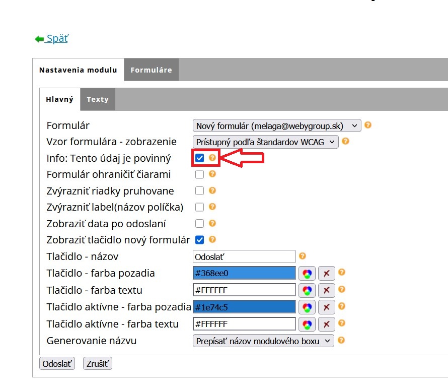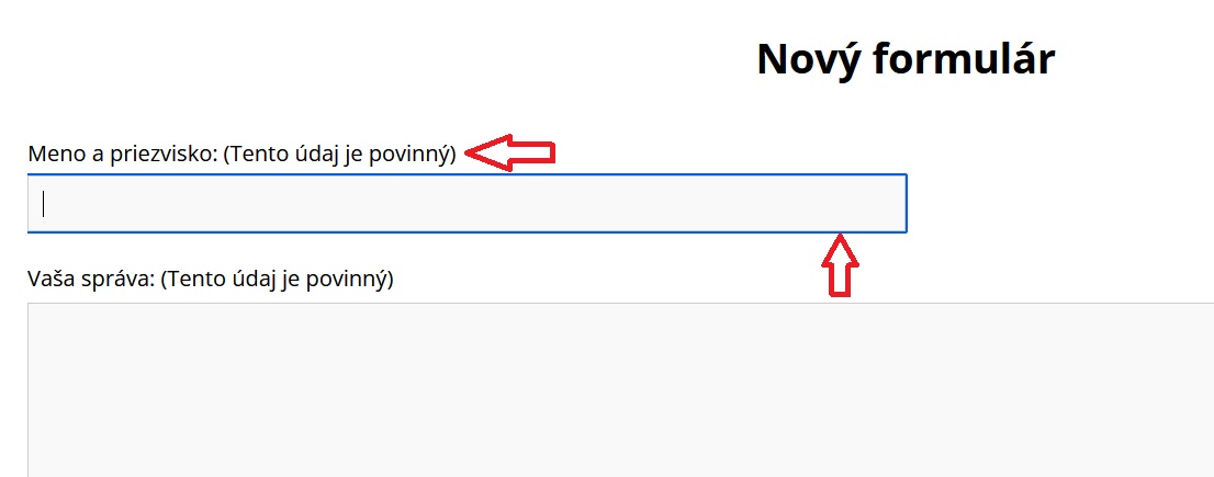 - Povinné polia by mali byť označené textom "Povinný údaj" a nie vyznačený hviezdičkou