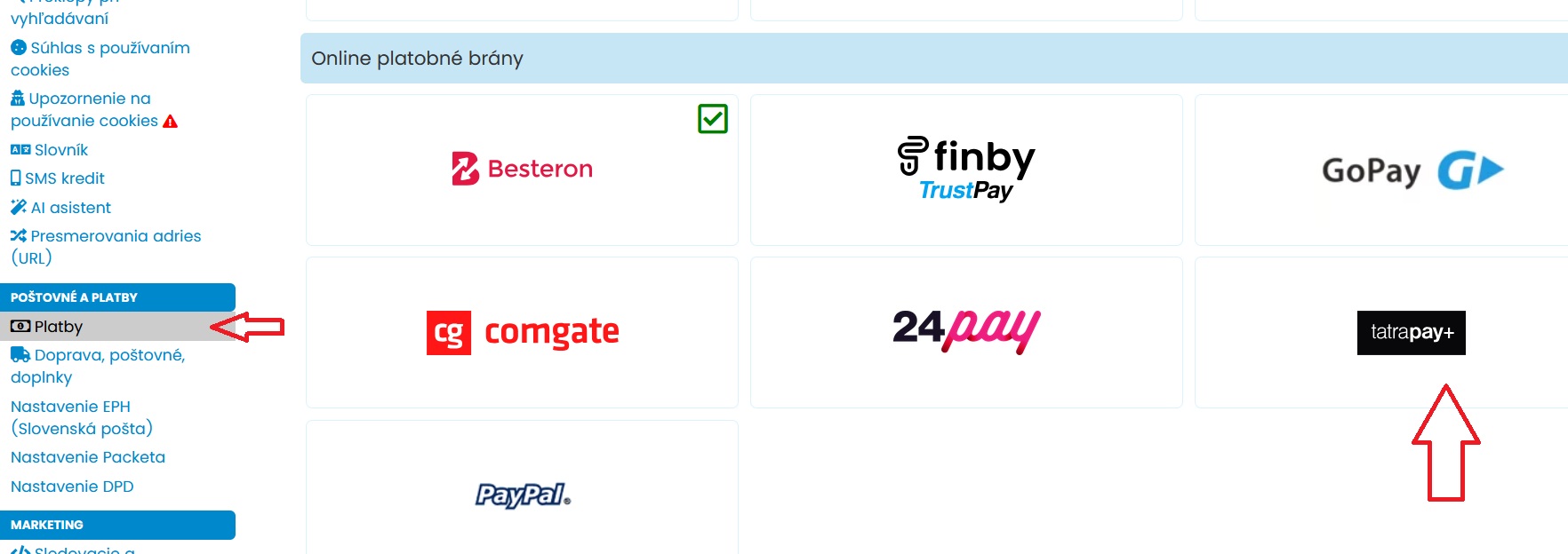 Nastavte, či chcete používať platbu cez TatraPay+ aj pre položky, ktoré nie sú skladom